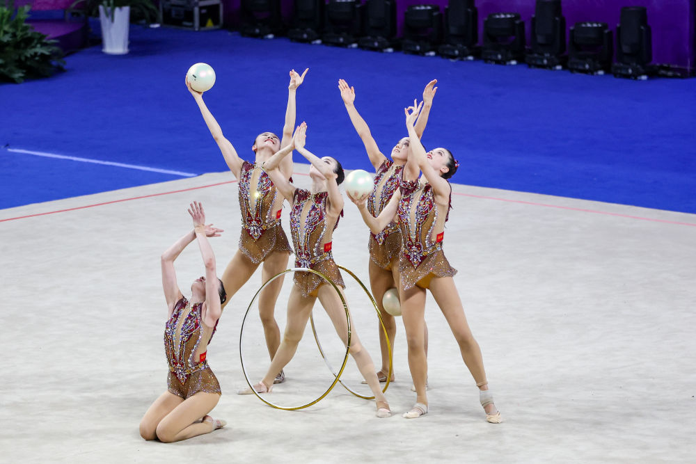 成年集体3球2圈资格赛中,巴黎奥运会冠军丁欣怡、王澜静领衔的北京体育大学队获得全场最高的28.40分。四川、上海、江苏等队获得3球2圈单项决赛资格;加上2日的5带资格赛成绩,四川、陕西电子、辽宁金满星等队锁定全能决赛资格。