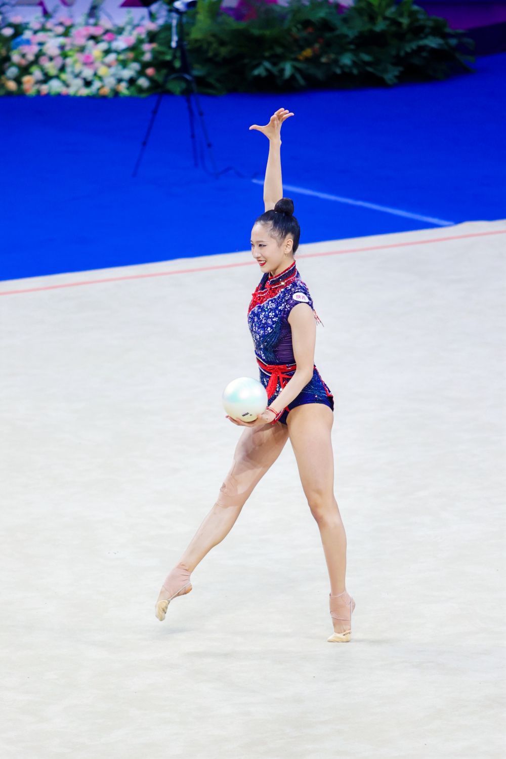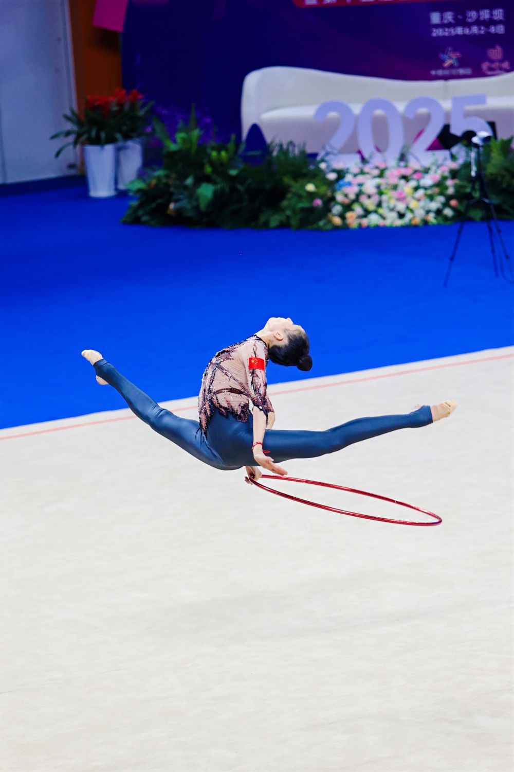 2025年全国艺术体操锦标赛暨第十五届全国运动会艺术体操资格赛3日继续在重庆大学虎溪校区体育中心进行,为中国队摘得首枚艺术体操世界杯个人项目金牌的王子露在成年个人资格赛中获得圈操、球操第一名。