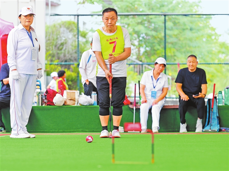 本次全民健身大赛门球比赛,吸引了全省40支队伍、300多人参加。胡斌 摄