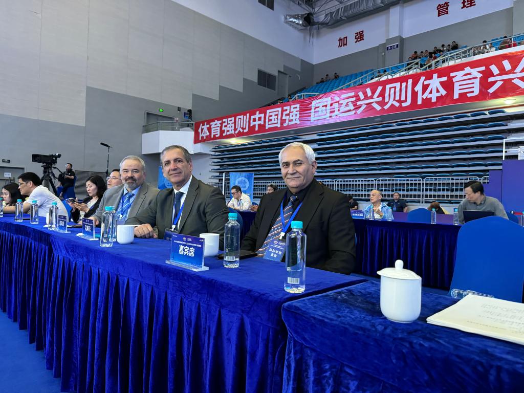 国际举联主席穆罕默德·扎路(前排右一)在2024年全国举重锦标赛现场