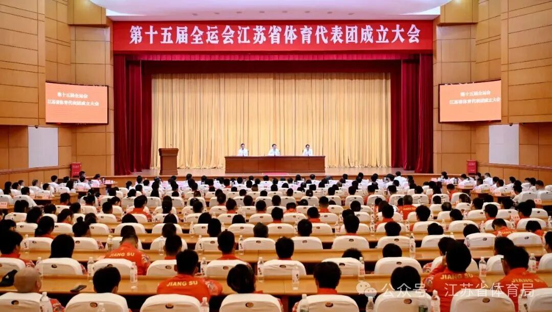 江苏省政府副秘书长徐华勤宣读了第十五届全运会江苏省体育代表团领导成员名单。江苏省体育局局长陈少军通报了全运会备战参赛工作情况。江苏省女子排球队队长龚翔宇、江苏省羽毛球队女子一线主教练刘永分别作交流发言。