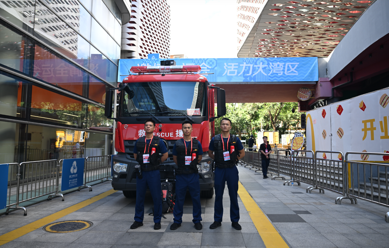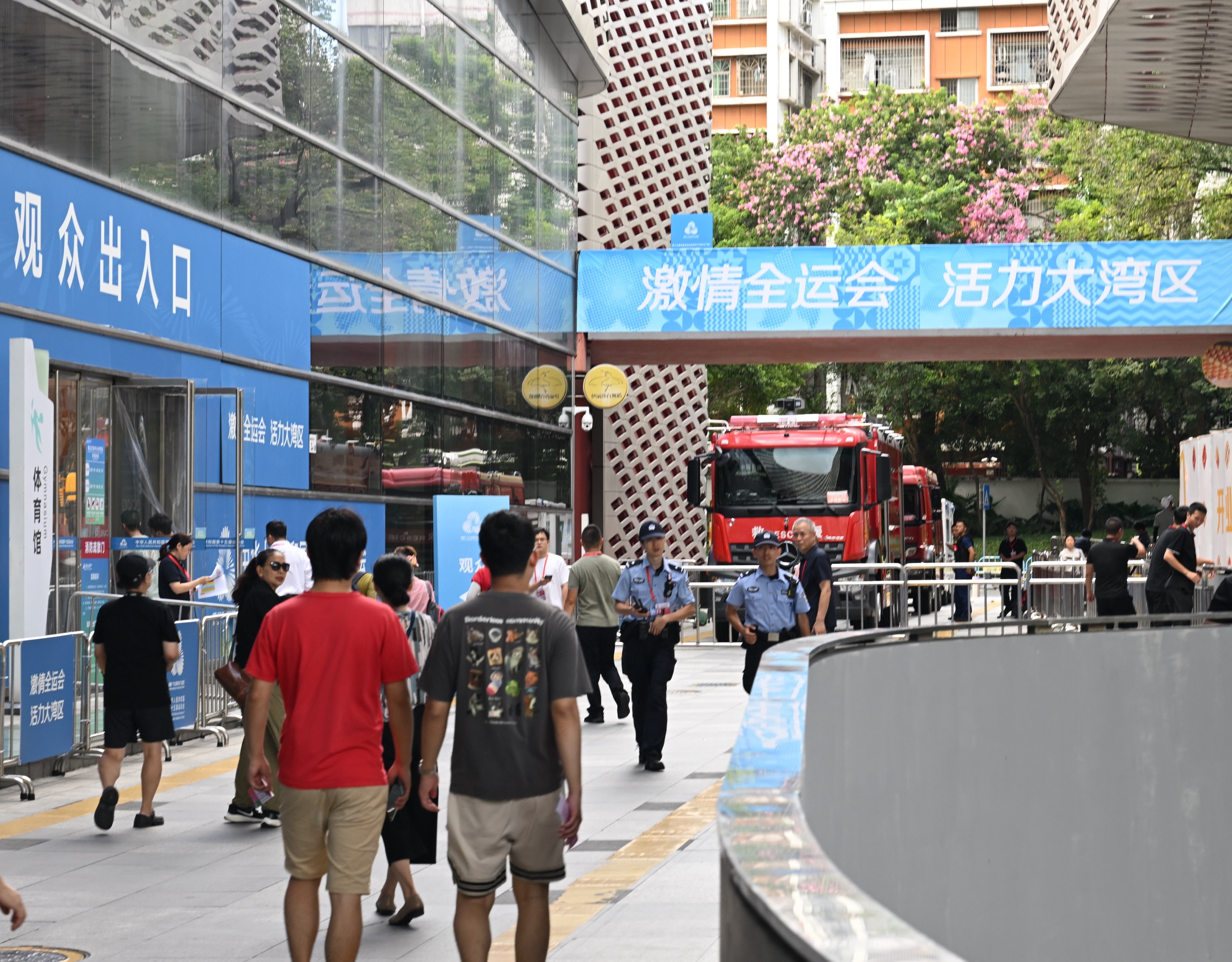▲公安消防交警等综合保障力量严阵以待,守护赛场内外。