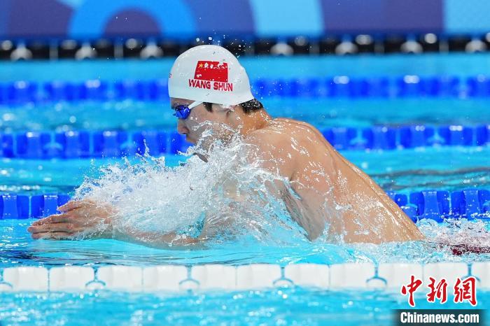 在巴黎奥运会男子200米个人混合泳决赛中,浙江游泳名将汪顺获得铜牌。图为汪顺正在比赛中。记者 赵文宇 摄