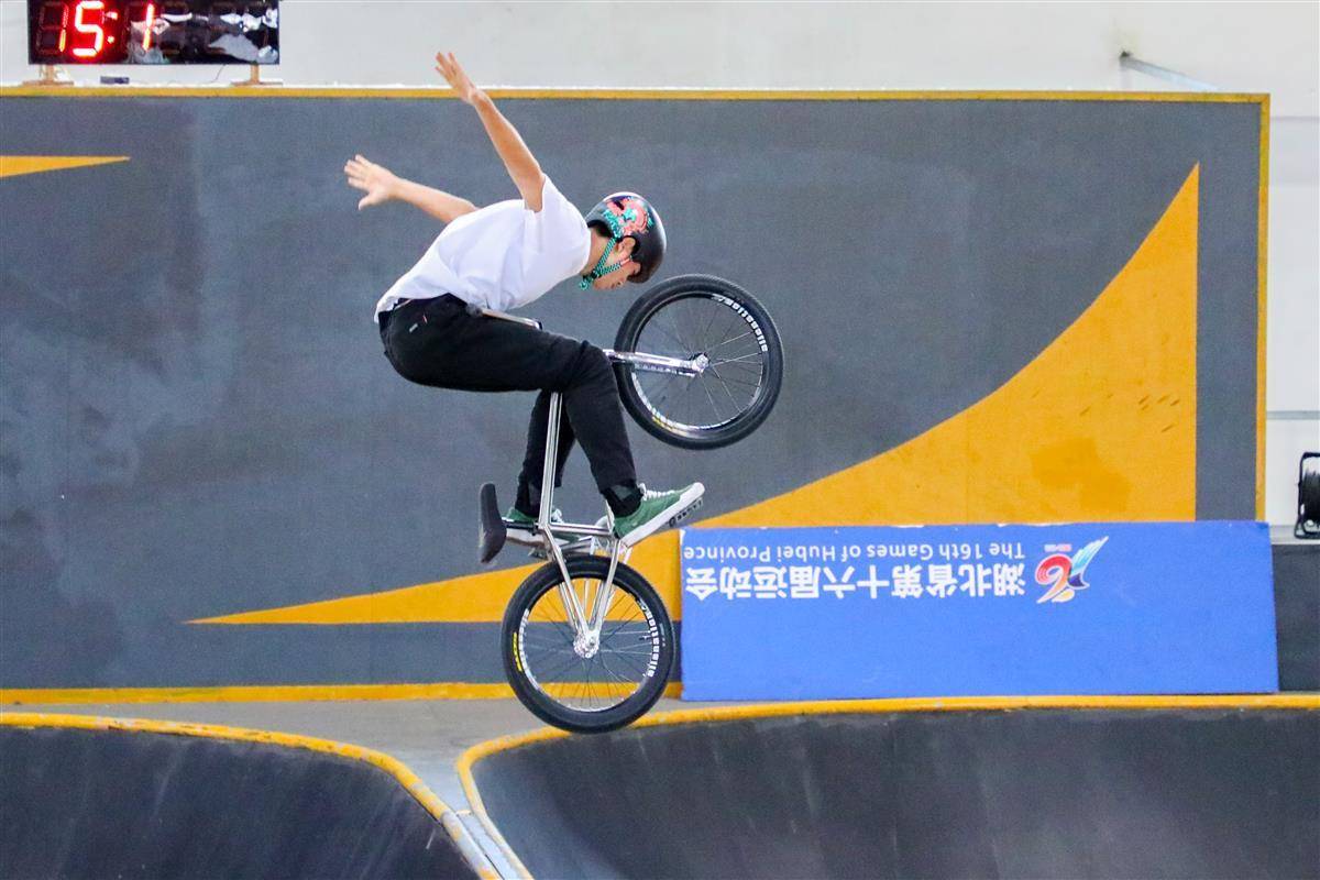 “啊!!!飞这么高,真有点吓人!”刚走进潜江市少年儿童体育学校内的湖北省小轮车队训练基地,记者就被腾空而起十几米的运动员吓了一跳。