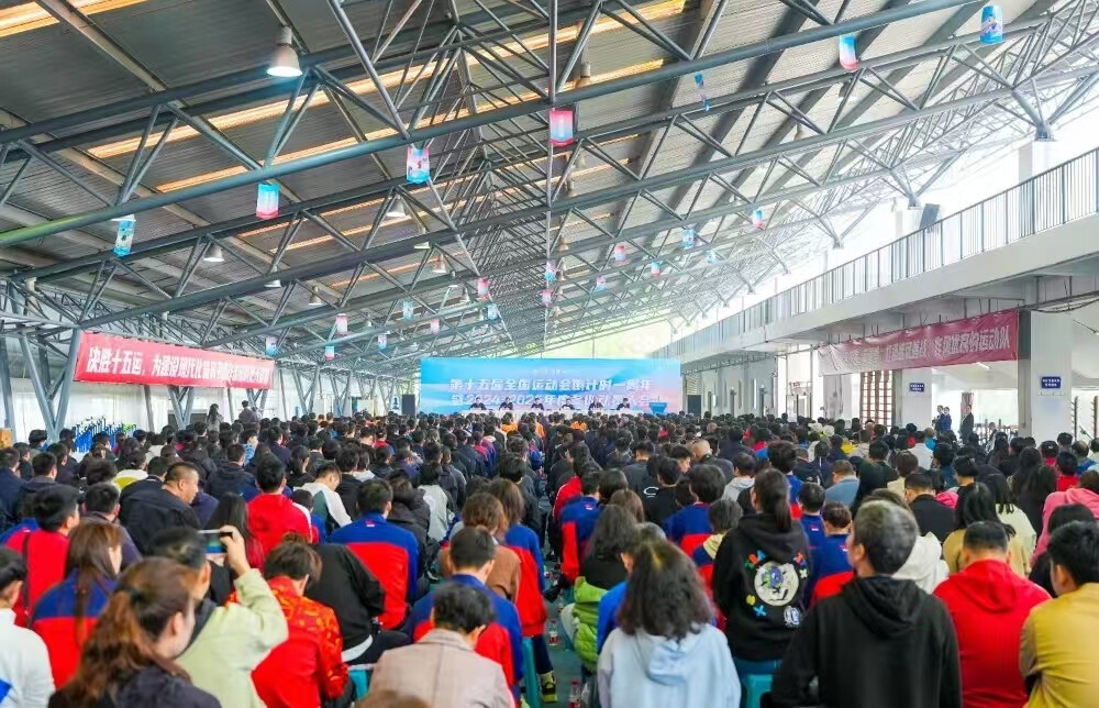 近日,重庆市体育局在市竞训中心召开第十五届全国运动会倒计时一周年暨2024—2025年度冬训动员大会。重庆市体育局党组书记、局长袁光灿出席会议并讲话,全体局领导,局机关各处室、直属单位、共建单位主要负责同志,直属备战单位全体干部职工,以及部分运动队主教练、领队、队医和运动员代表共800余人参加会议。会议由局党组成员、副局长石强桢主持。