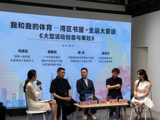 本次分享活动聚焦大型活动的创意与策划,邀请到在国际大型活动与城市文旅演艺策划制作领域有着丰富经验的梁振运先生作为主讲人,和文化艺术领域专家共同探讨如何通过体育赛事的大型活动展示广州文化、提升城市形象,以及促进粤港澳大湾区的人文融合。十五运会和残特奥会广州赛区执委会相关部门代表、体育行业代表和湾区书屋的读者朋友们参与了此次分享活动。
