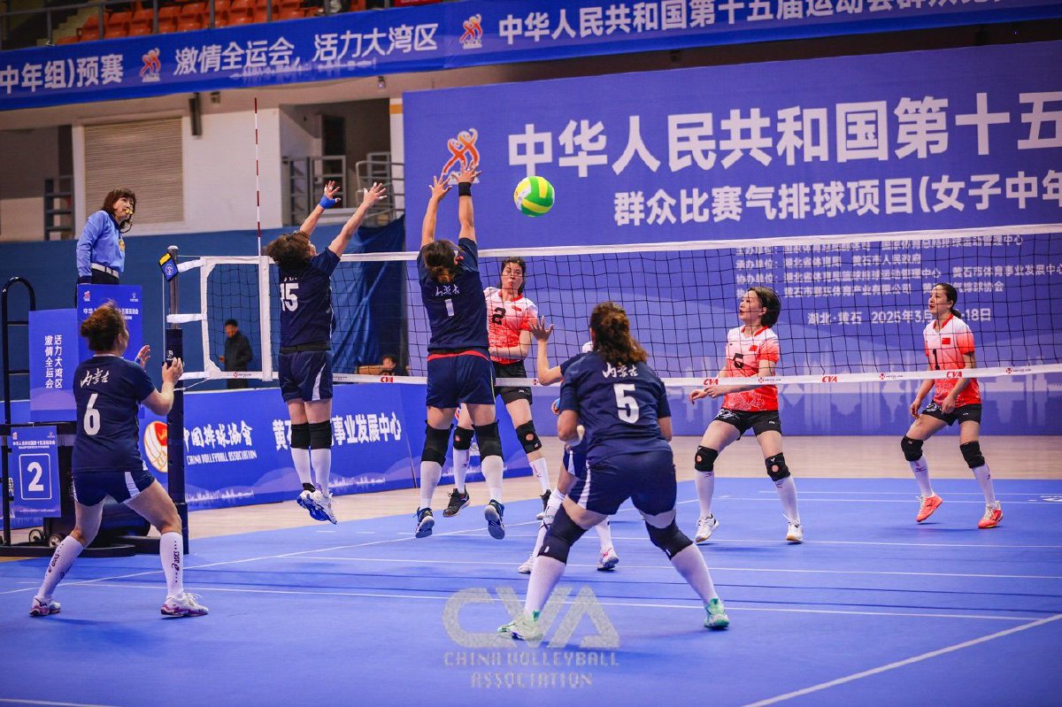 第十五届全国运动会群众比赛气排球项目(女子中年组)预赛日前在湖北黄石体育馆结束。来自25个省区市和行业体协代表队的近240名选手经过三天共47场比赛的激烈竞争,决出了最后的晋级队伍。福建省、山东省、浙江省、湖南省、上海市、云南省及公安体协七支代表队成功晋级将于8月在广东台山举行的决赛。