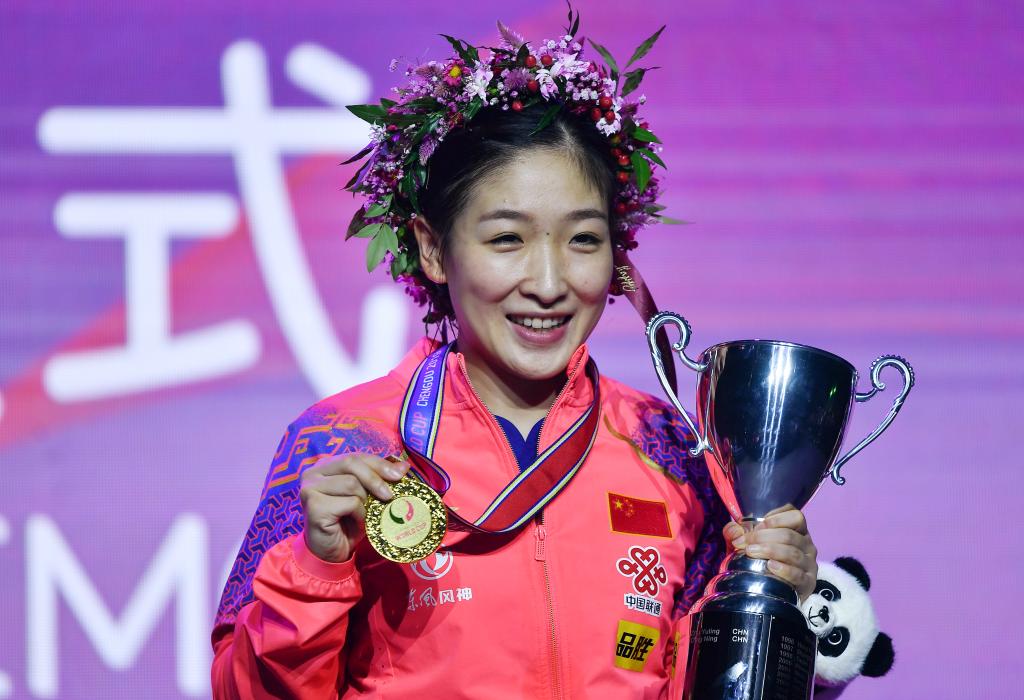 2019年10月20日,冠军刘诗雯在国际乒联女子世界杯颁奖仪式上。薛玉斌 摄