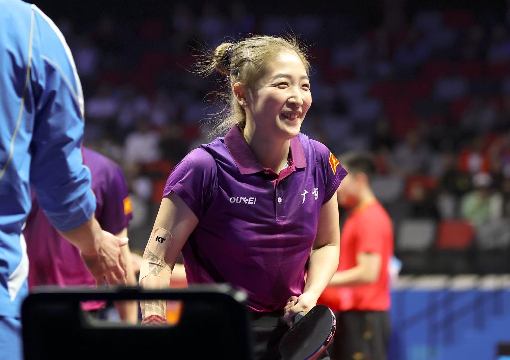 2025年11月13日,刘诗雯在第十五届全国运动会乒乓球混合双打半决赛后。梁旭 摄