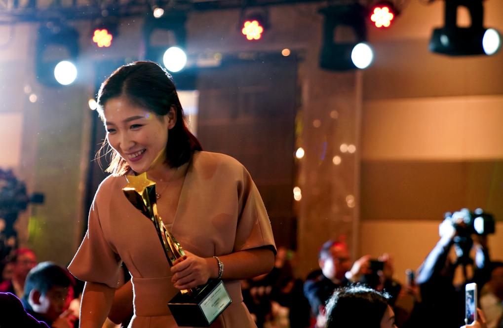 2019年12月11日,中国运动员刘诗雯在颁奖盛典上。刘诗雯获国际乒联2019年度最佳女运动员称号。李安 摄