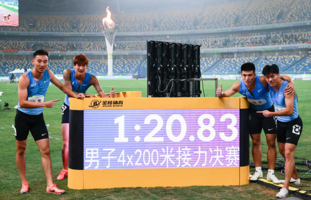 男子4×200米接力决赛山东队以1分20秒83夺得冠军,年度第2次刷新亚洲纪录。