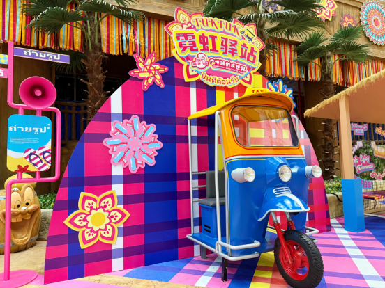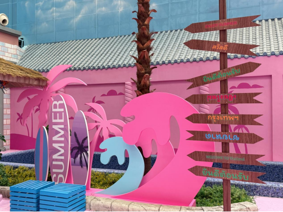 ③“泰好看”IP打卡点:“泰出圈”“TUK TUK 霓虹驿站”“落日天台”等泰式风情打卡点,芭比粉配色,一键出片超好看