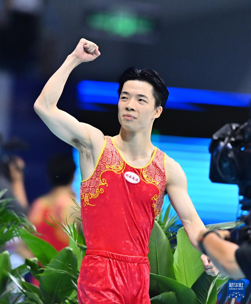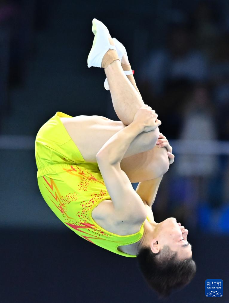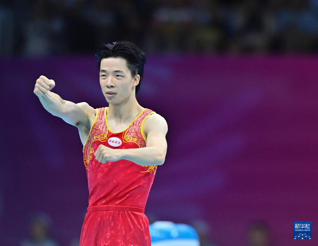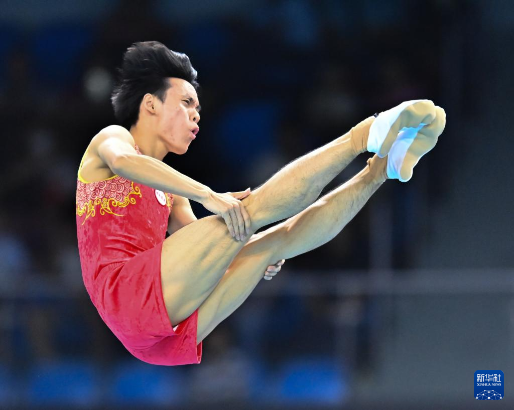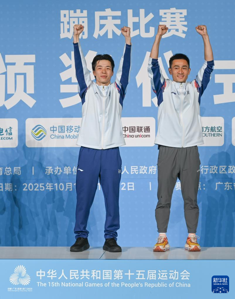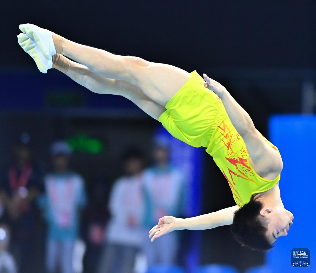 当日,第十五届全运会蹦床男子个人决赛在广州体育馆举行。
