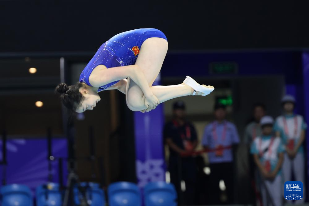 10月11日,山西队队员胡译乘在比赛中。最终,山西队获得冠军。当日,第十五届全运会蹦床女子团体决赛在广州举行。