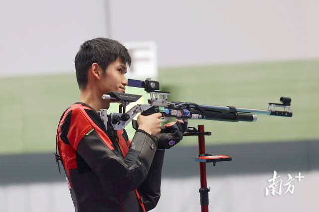 10月14日下午,第十五届全国运动会射击(步手枪)比赛继续进行。在当天进行的男子10米气步枪个人决赛中,巴黎奥运会冠军、江苏队选手盛李豪以254.6环的成绩夺冠。吉林选手王雨桐以252.3环摘得银牌,陕西选手刘宇坤获得铜牌。