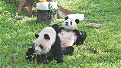 广州动物园大熊猫组团“上岗”迎接全运会