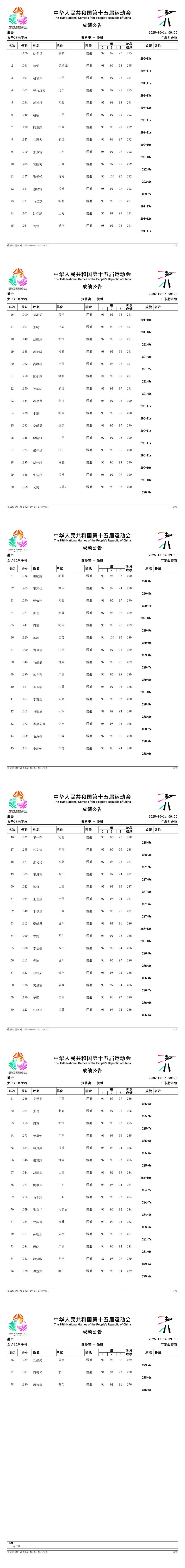 第十五届全国运动会射击女子25米手枪资格赛慢射成绩