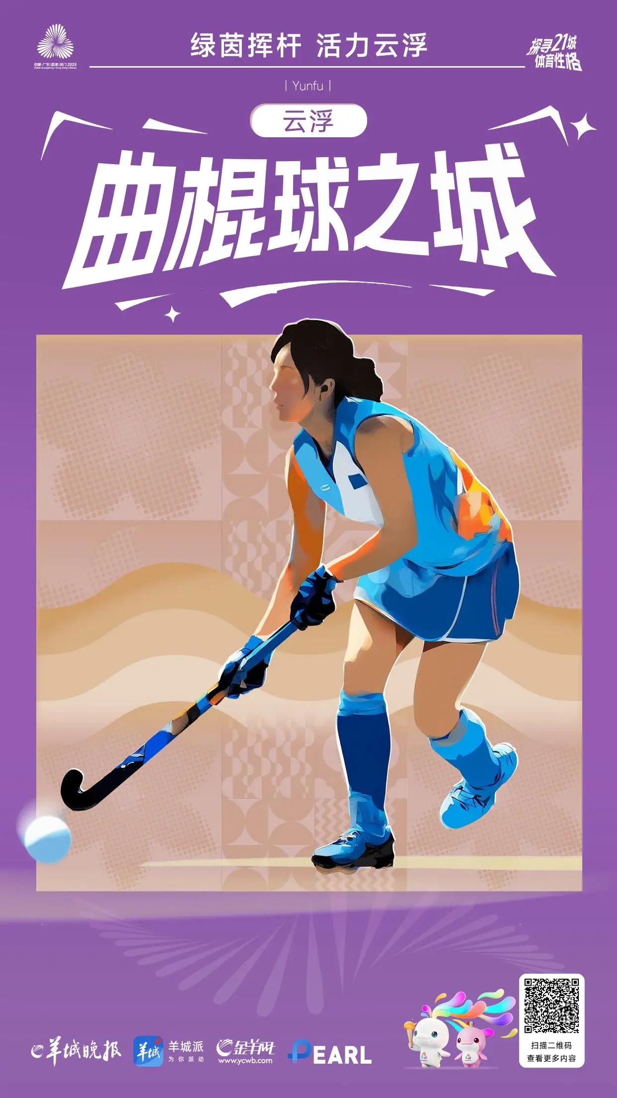2025年10月和11月,第十五届全运会曲棍球赛事将在云浮举行。主场云浮市曲棍球场达到国际精英级标准,可容纳2000人观赛;训练场云浮市体育公园曲棍球场,连续四年承办全国赛事,云浮还获评全国优秀赛区。