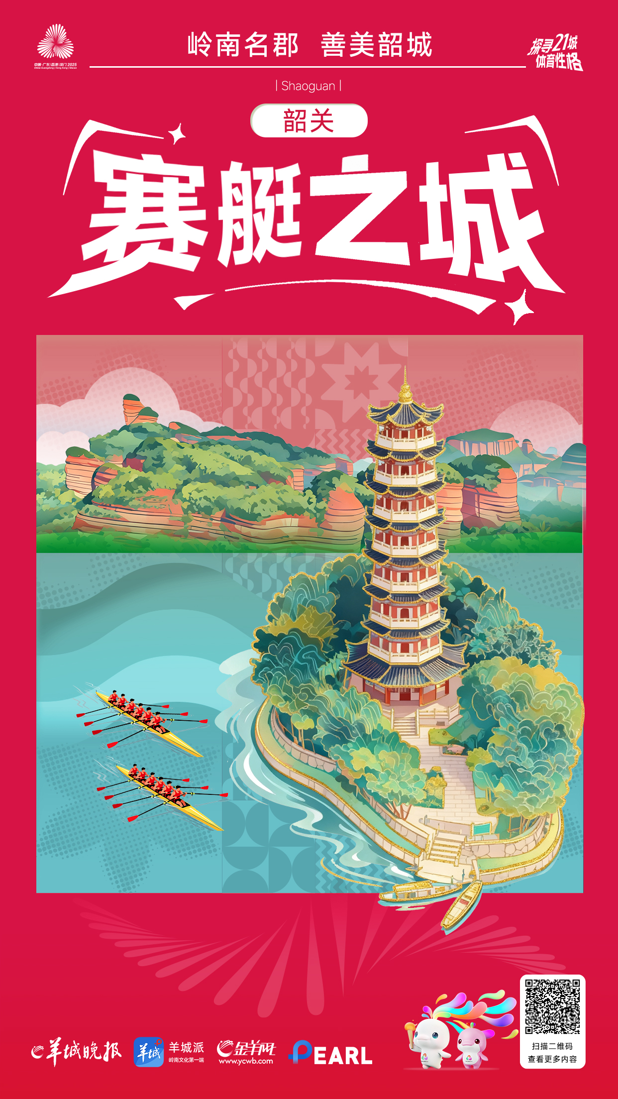 韶关,古称韶州,是中国优秀旅游城市、国家森林城市。韶关自古人杰地灵,浈江、武江、北江三江蜿蜒穿城,三江六岸青山叠绿成画。唐代名相张九龄正是韶关人,他留下诸多经典诗句,“海上生明月,天涯共此时”更是千古绝唱。如今的韶关,正在申报创建高质量户外运动目的地,“赛艇之城”成为韶关新的体育名片。