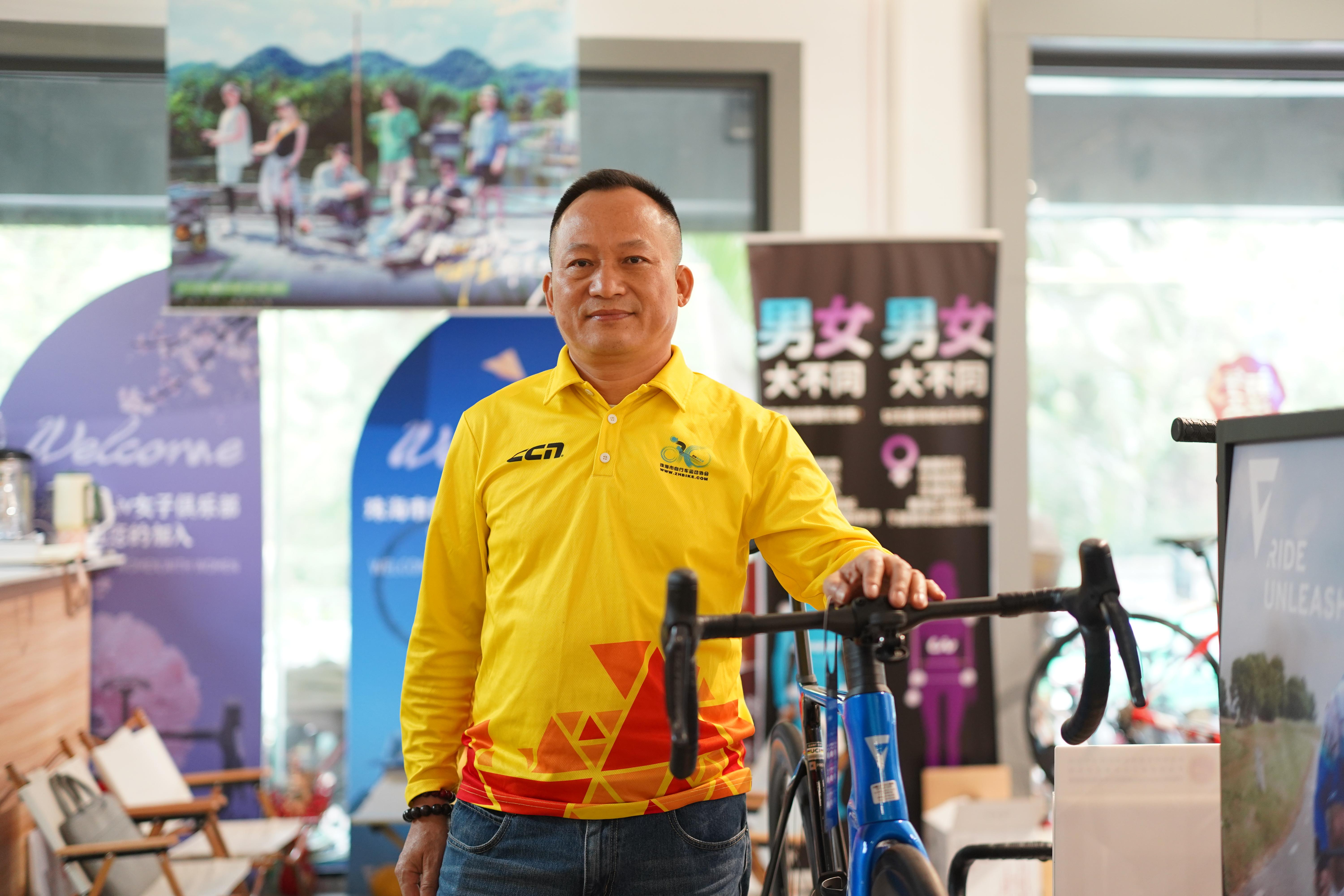 谭忠铭不仅是骑行运动达人,每年还参与珠海大大小小各种自行车比赛和活动的组织工作,他本来在珠海斗门区一项近日开赛的自行车赛进行赛道丈量,工作很繁忙,此次是专门赶回位于香洲区的珠海市自行车运动协会接受采访。