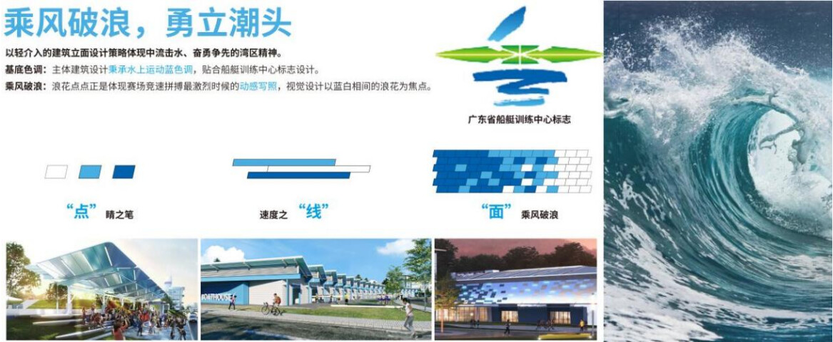 百舸争流正是体现激流回旋赛场皮划艇乘风破浪的竞赛特征,建筑及场地设计将以此作为方案的主题。