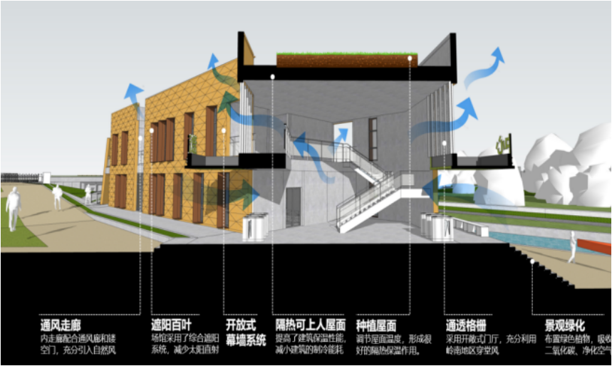 激流回旋赛场:赛事中心采用“岭南穿堂风”设计,镂空幕墙搭配通风廊道,温度比常规建筑低5℃;训练楼打造“立体农场”:屋顶光伏发电及底层雨水回收;功能房使用装配式建材,赛后30%构件可拆卸重组。