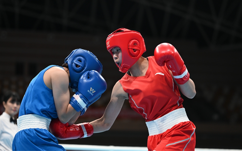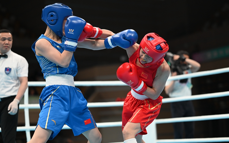 其中,吴愉在48-50公斤级决赛中与陕西选手齐昕宇的“国家队内战”引人关注。三回合战罢,吴愉凭借更为精准的有效拳和娴熟的防守技巧,以总比分5:0击败了齐昕宇。不过,齐昕宇也在比赛中展现出了过人的勇气和日益成熟的攻防技术,赛后,她表示:“虽然拿银牌略有遗憾,但我把平时训练的成果都展现出来了,也在对抗中从对手身上学到了很多东西,这些将对我征战全运会决赛阶段比赛大有帮助。”
