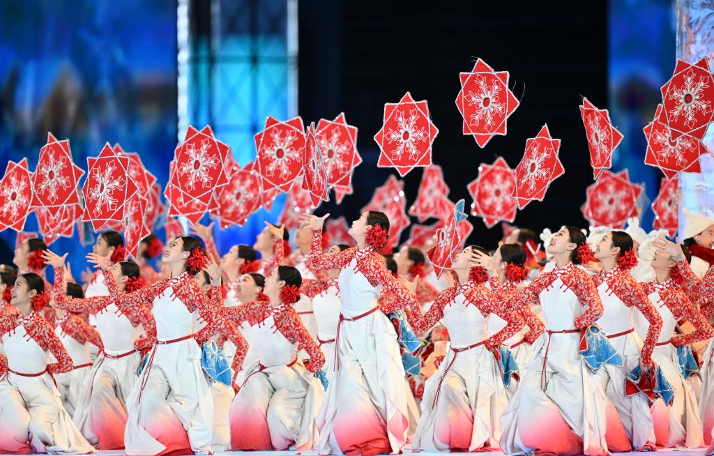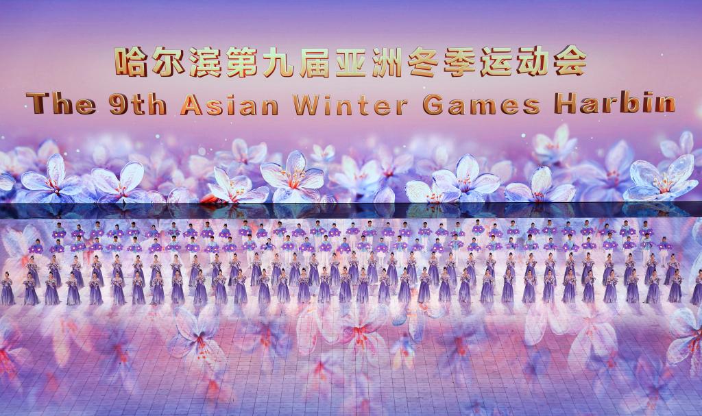 2月7日,演员在开幕式上表演。当日,第九届亚洲冬季运动会开幕式在哈尔滨举行。新华社记者 杨磊 摄