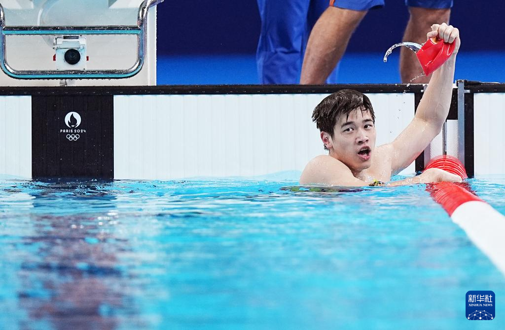 7月31日,中国选手潘展乐在比赛后庆祝。新华社记者 杜宇 摄
