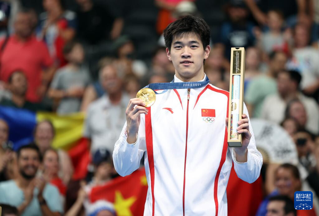 7月31日,中国选手潘展乐在颁奖仪式上。新华社记者 雒圆 摄