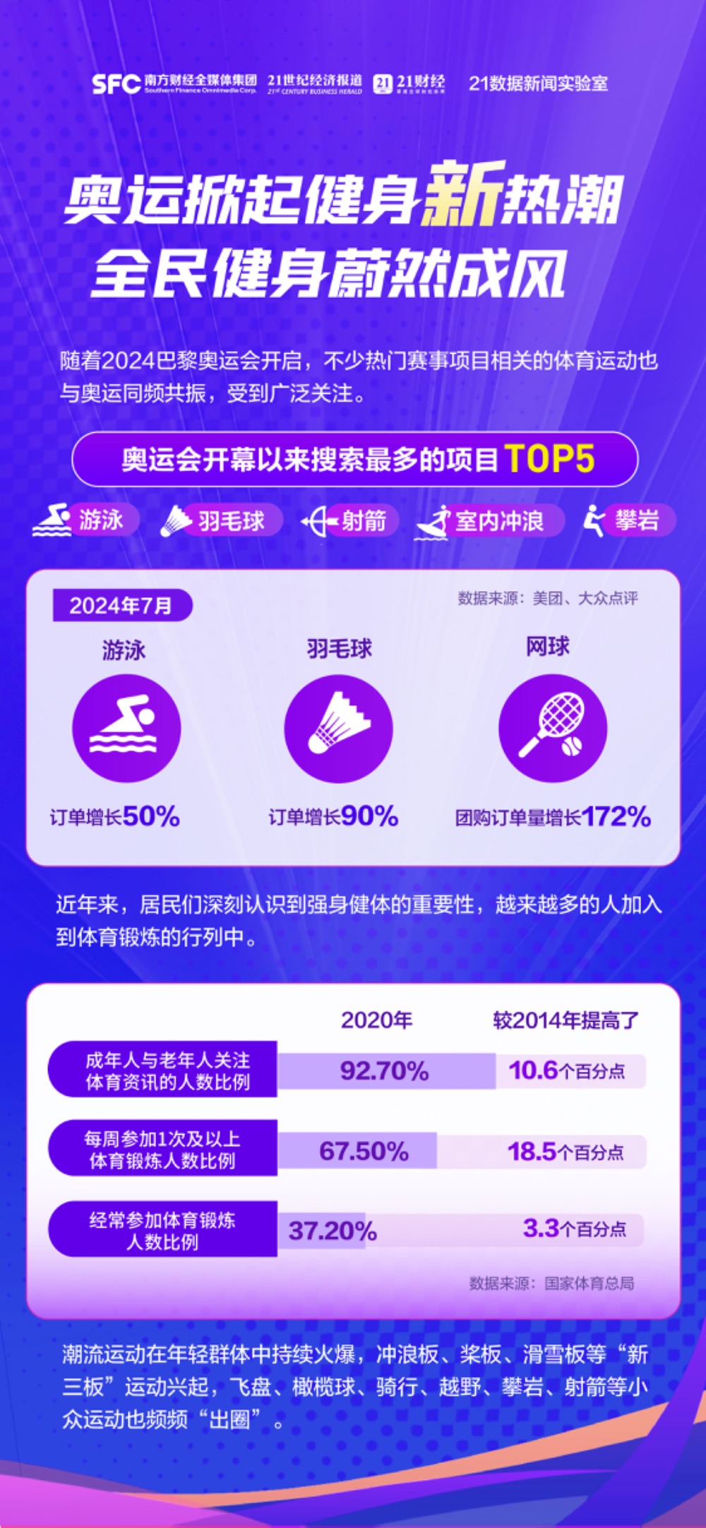 如今,“全民健身日”进入第16个年头,中国体育强国建设、体育产业建设成效如何?中国体育产业有哪些“新”力量?21数据新闻实验室带你一组图看懂→