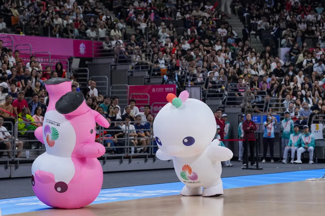 十五运会赛场上,“喜洋洋”“乐融融”人偶的生动演绎令观众们印象深刻