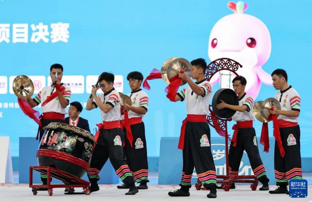 粤港澳联队在十五运会群众展演舞龙舞狮南狮自选项目决赛中