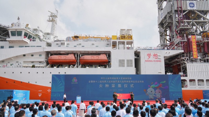 2025年10月9日上午,位于广州市南沙区的广州海洋地质调查局科考码头气氛热烈。在“梦想”号大洋钻探船的见证下,第十五届全国运动会和全国第十二届残疾人运动会暨第九届特殊奥林匹克运动会火种采集仪式举行。