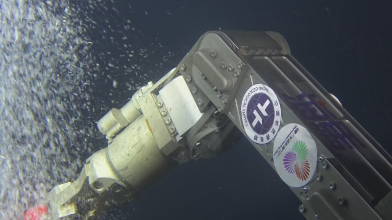 位于中国南海北部海域的海马冷泉区,就是此次任务的目的地。9月18日14时26分,广州海洋地质调查局牵头自主研发的“海马”号深海遥控潜水器(ROV)下潜至1522米的海底,抵达冷泉渗漏点。科研人员远程精准操控机械臂持采集舱,采集渗漏点溢出的可燃冰及伴生气。沉睡的可燃冰在降压作用下被“唤醒”,分解产生的甲烷气体成为“源火”气源。16时48分,船上的光伏发电装置将太阳能转化为电能并传输到海底,在1522米的深海成功将这股来自地球“蓝色血脉”中的气体引燃。