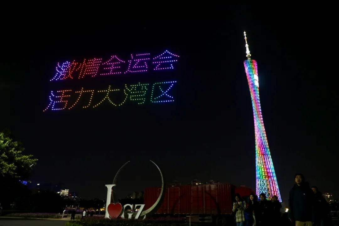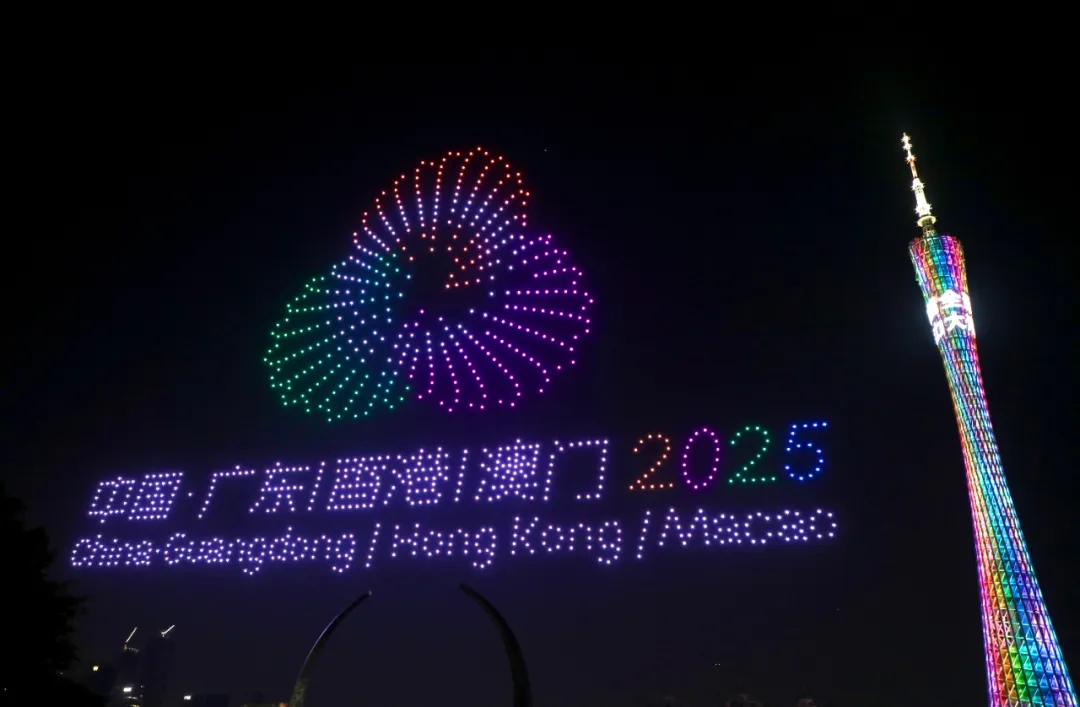 “庆祝澳门回归祖国25周年”字样璀璨耀眼