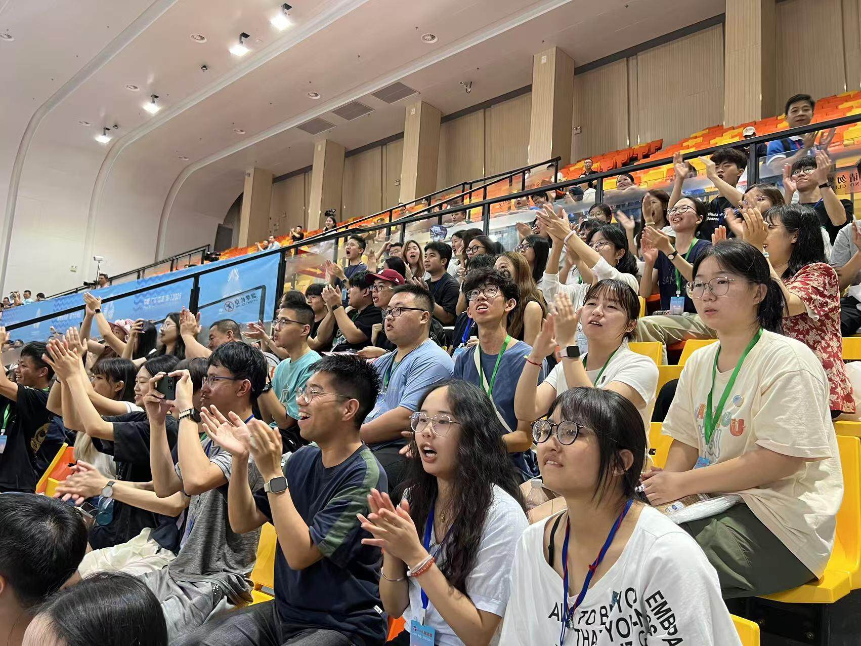 台下,2025年粤港澳青年文化之旅学生代表们组成加油团来到现场观赛,成为汕头赛区的一道青春风景线。