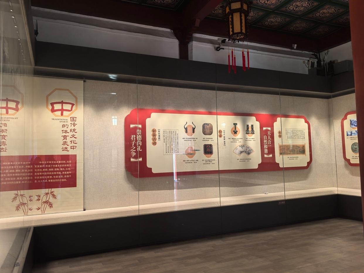 据策展方介绍,本次展览共分为象棋历史与文化、中国传统文化中的体育表达、象棋主题书法艺术、中华体育精神的艺术表达四个板块。回顾了象棋的起源与各朝代历史发展情况,讲述代表性象棋历史故事,将象棋文化中蕴含的传统哲学思想、战略思想以及礼仪思想等以图、文、文物、书法艺术作品等形式予以展现和表达。还展出了中国体育博物馆馆藏的国家二级文物:宋代中国铜象棋子、国家三级文物清代象棋棋谱《韬略元机》等历史文物。在展览中,以中国体育文化为视角,展现了射箭、投壶、水戏、养生、蹴鞠等传统体育项目中映射的知礼崇德、包容进取、自强不息、以人为本、尊重自然等中国精神;最后的艺术展示区域,广大体育工作者与艺术家,以笔墨表达了对象棋的文化理解,彰显了中华体育精神的磅礴力量。