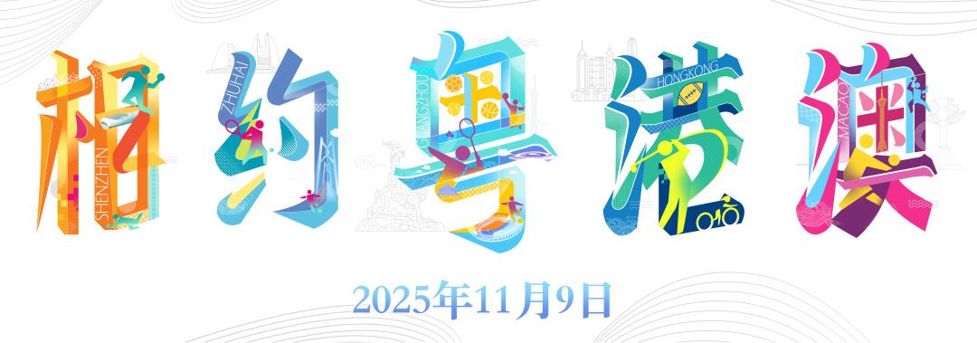 广州日报新花城发布的“粤”字海报流畅新潮,广州塔、天河体育中心、南沙全民文化体育综合体等建筑跃然其上;深圳特区报发布的“相”字海报灵动飘逸,可见深圳大运中心、深圳湾体育中心等场景巧妙串联;珠海特区报发布的“约”字海报别致活泼,珠海大剧院、港珠澳大桥等元素相得益彰;香港大公文汇报发布的“港”字海报时尚潮流,红磡体育馆等场馆灵动排列;澳门日报发布的“澳”字海报生动利落,澳门观光塔、金莲花广场等地标交相呼应。同时,五张海报都统一标注了时间——2025年11月9日。