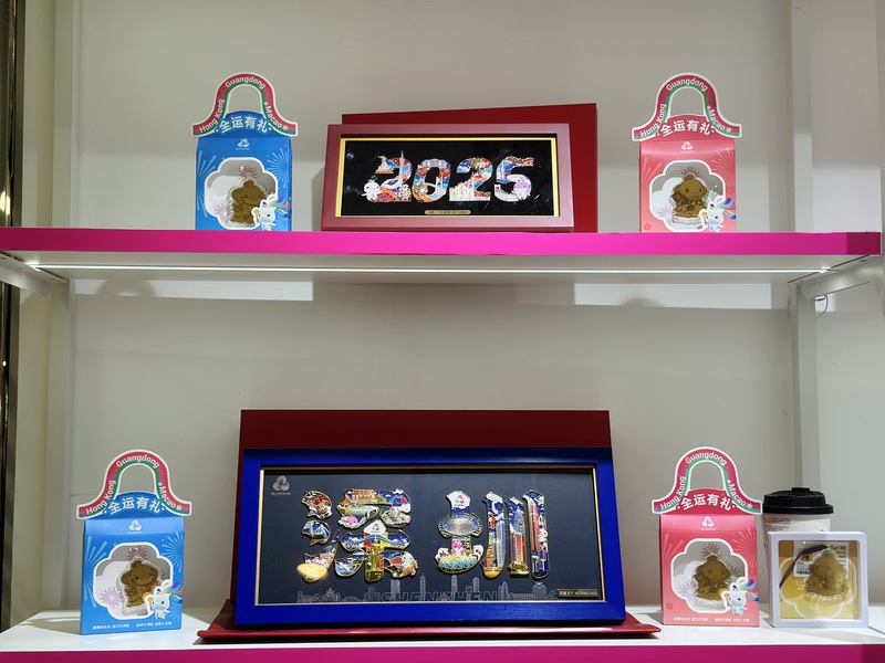 融合粤港澳饮食文化的“寻味粤港澳”冰箱贴系列广受好评,潮汕工夫茶、湛江生蚝、广州白切鸡等立体设计元素引发地域共鸣。陈灿潮回忆:“有位来自顺德的游客看到顺德双皮奶作为元素出现时非常惊喜,还有湛江的客户看到湛江参桃时觉得很精致很喜欢。”深圳地标平安大厦、春笋等元素的徽章亦成为游客打卡首选。“地域限定”商品激发了相关游客的家乡自豪感并产生了情感共鸣,此类产品不仅拓展了消费场景,更以文化符号深化赛事与城市的情感联结。