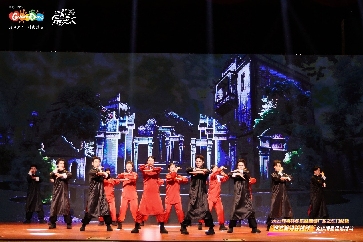 会上,主办方推出了“跟着影视去旅行”十二条主题旅游线路,并首次发布了“跟着影视去旅行”主题宣传片以及“喜洋洋乐融融游广东”之江门站宣传视频,全方位展现了广东作为“天然影棚”的独特魅力,诚邀全国游客前来探索南粤大地荧幕内外的精彩。现场,《到江门来》《银信之约》《一代宗师》等精彩的特色演出,以艺术形式生动再现侨乡文化与银幕经典。