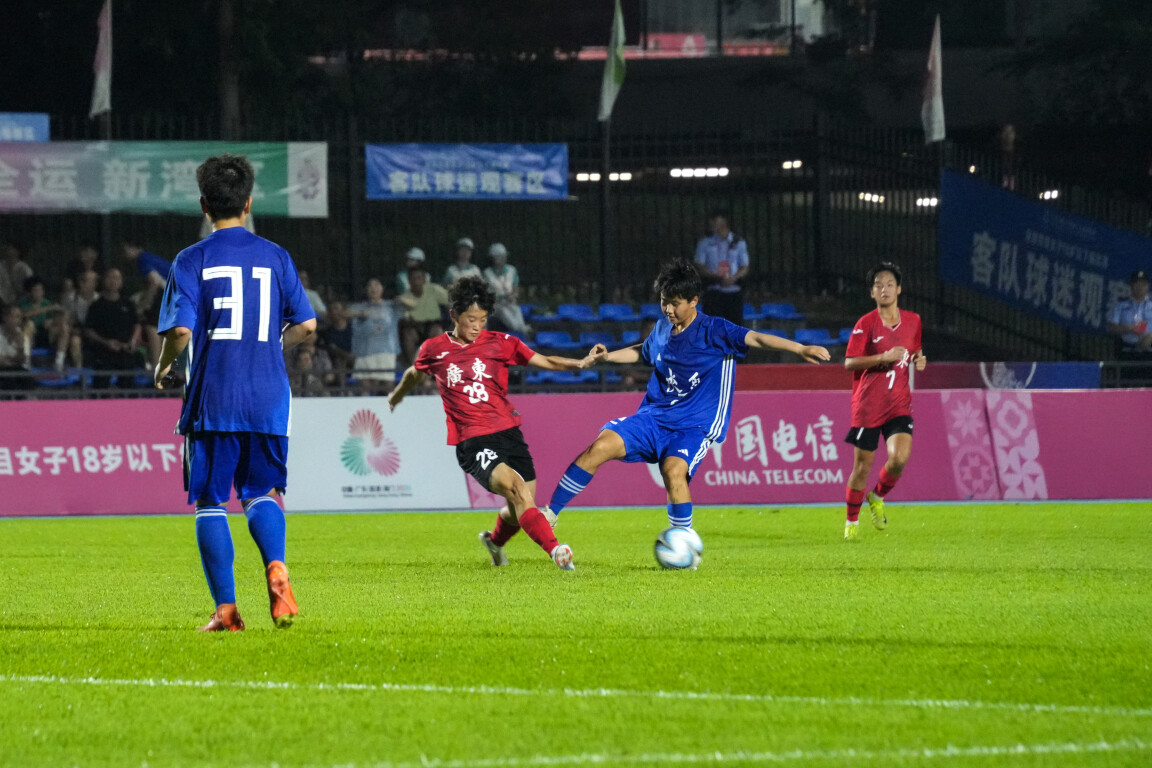 当晚,随着一声哨响,山东队对阵上海队比赛正式开赛。“上海队,加油!”“上海队,进一个!”面对对手,上海队踢得游刃有余,锋芒毕露的前锋周欣怡梅开二度,分别在第23分钟、第42分钟头槌破门,帮助球队2:0领先山东队。下半场,山东队试图加强进攻挽回颓势,但上海队的防线固若金汤,掌控节奏遥遥领先。第58分钟、第69分钟,上海队进攻火力依然不减,前卫吴蕊、后卫李晨语两人分别抓住机会捅射破门,将比分扩大为4:0,完胜山东队,强势晋级决赛。