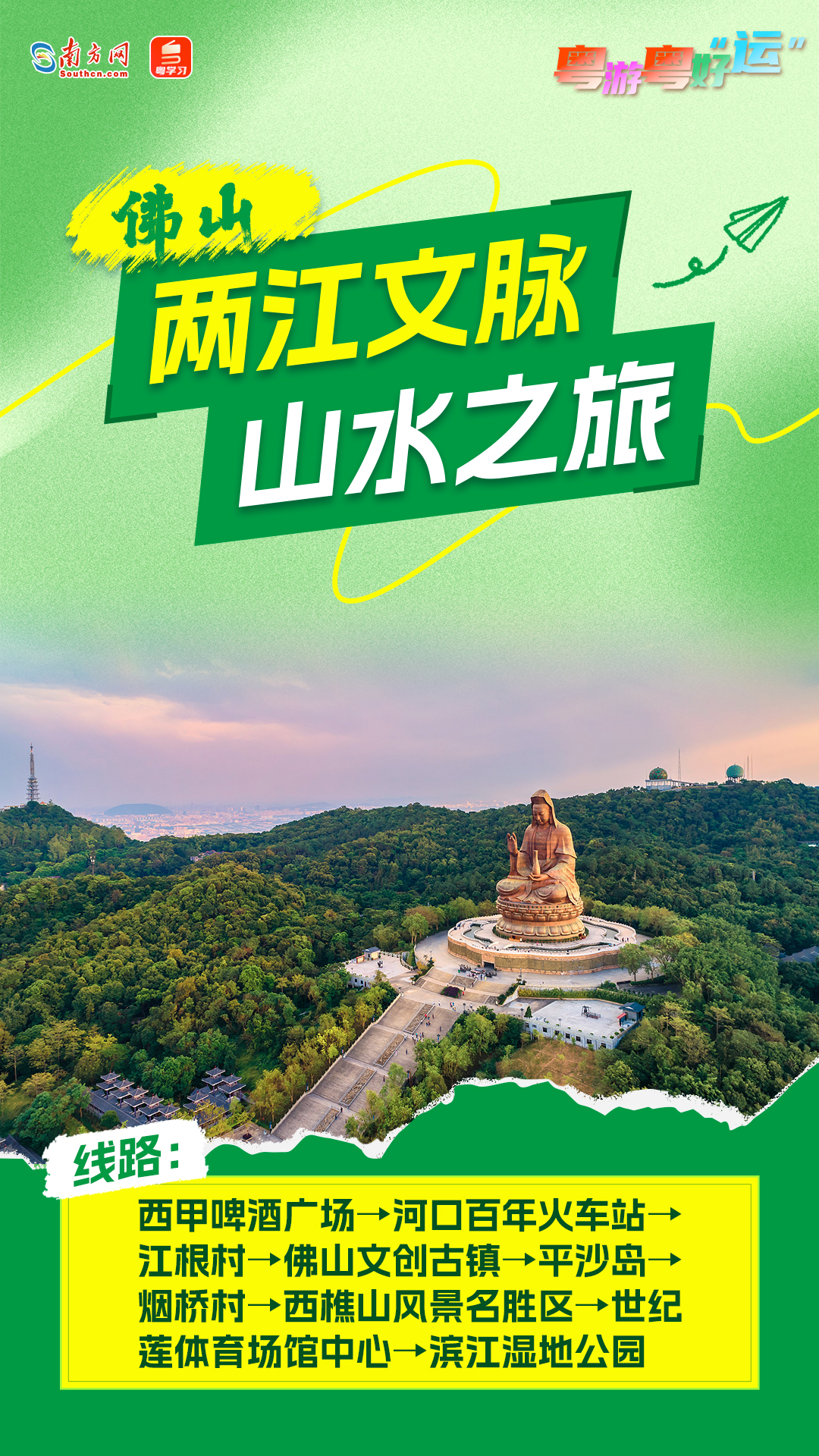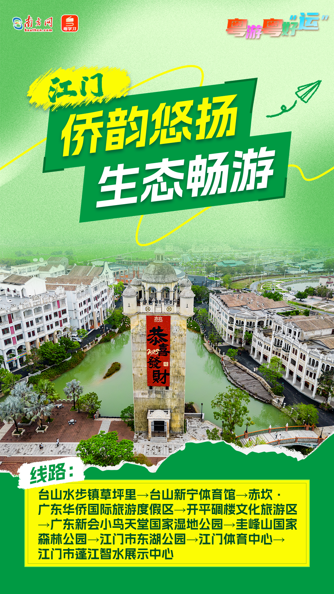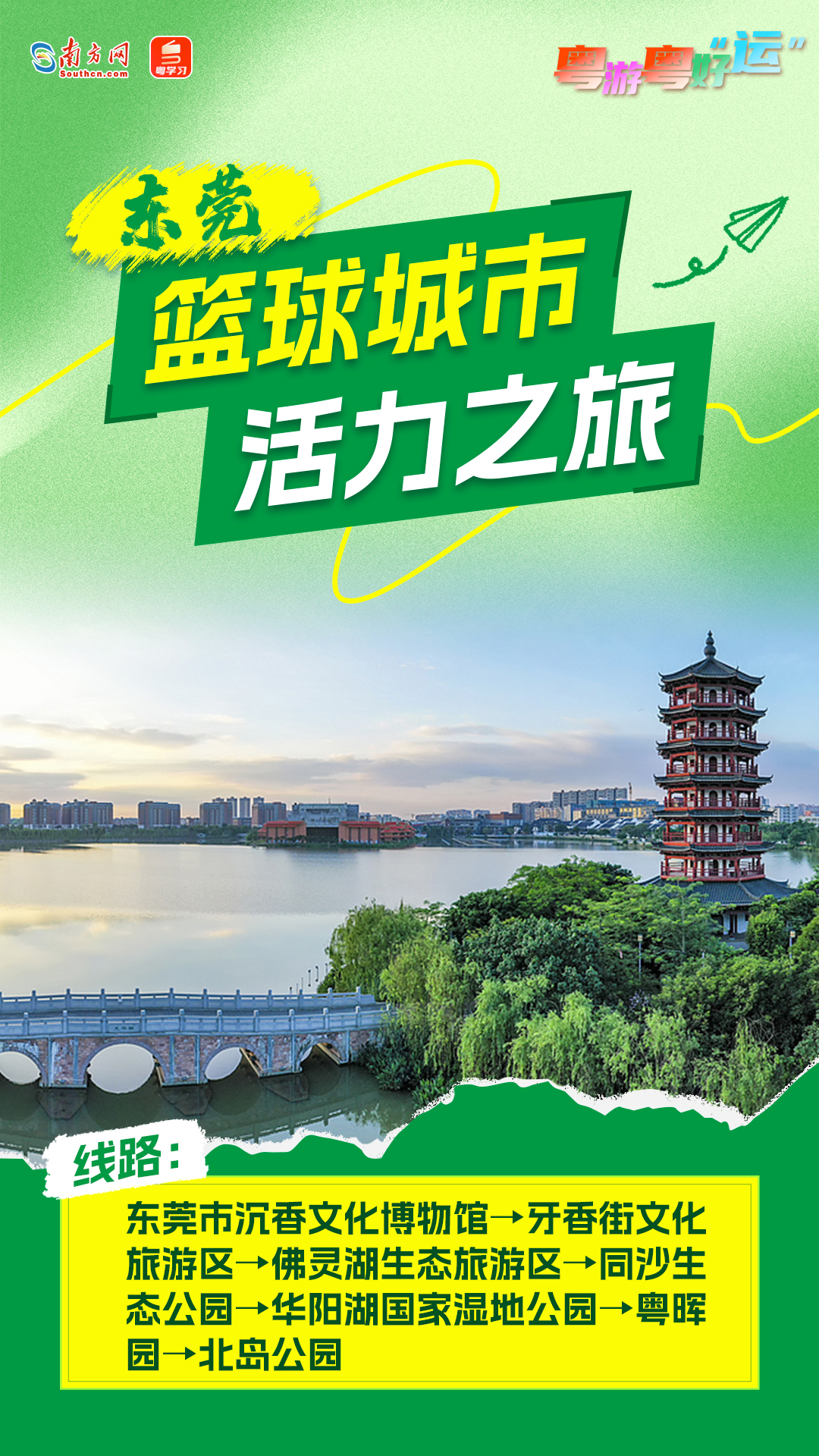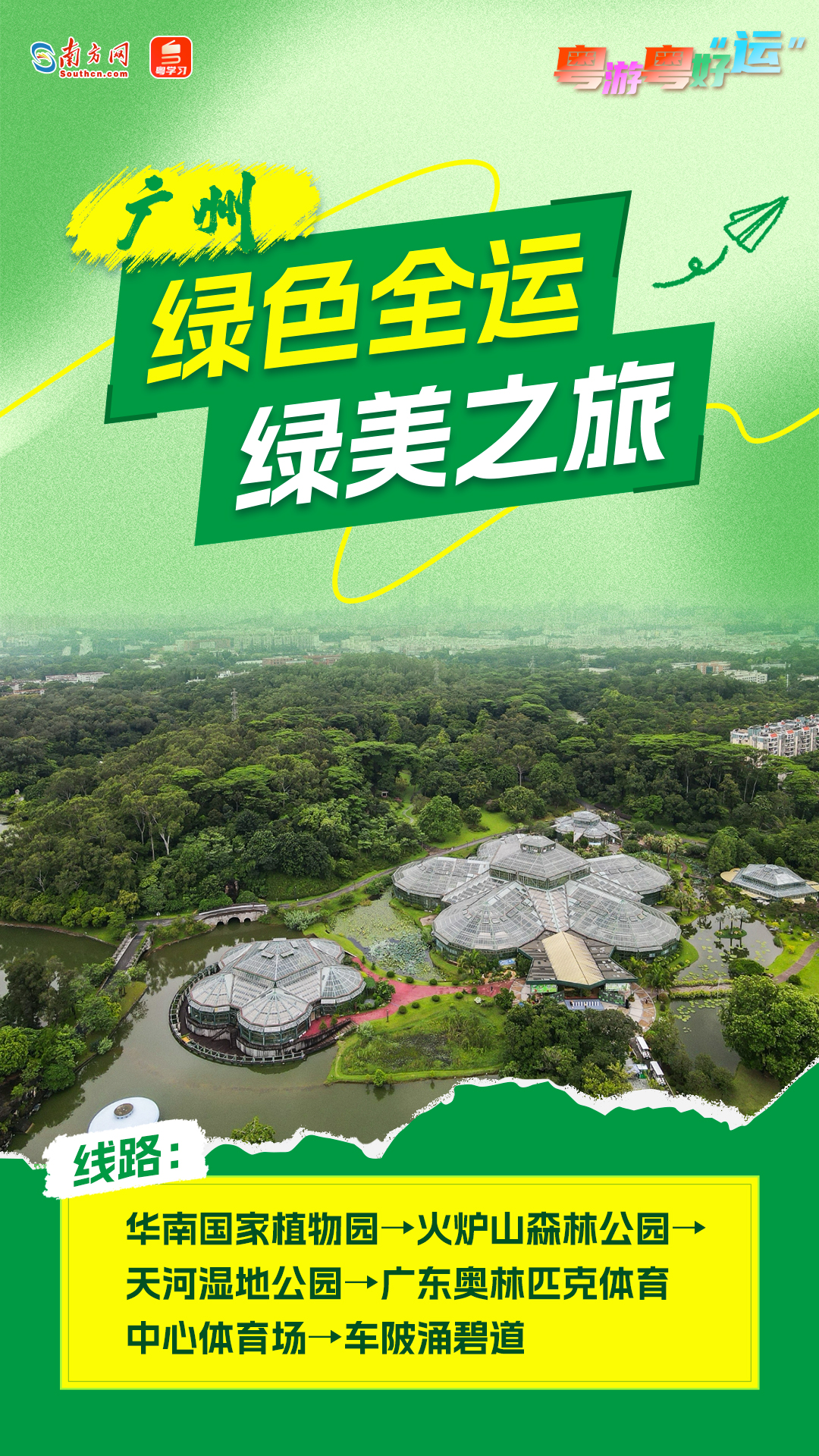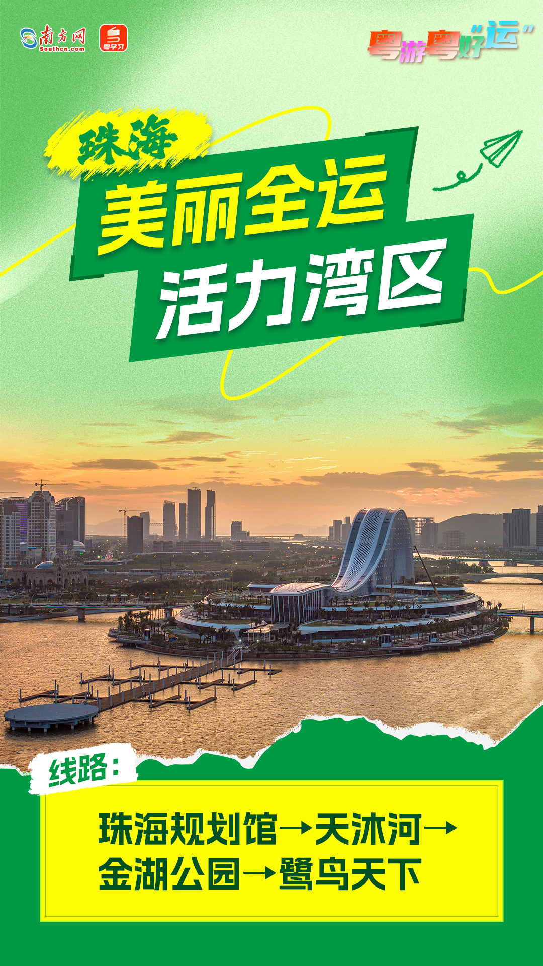 为充分展现美丽广东建设成效,积极推进“无废全运”“美丽全运”工作,广东以“观全运赛事、看美丽广东”为主题,以16个赛事举办城市美丽资源为基础,发布美丽广东生态文旅线路(首批16条),持续擦亮生态人文广式靓丽名片。