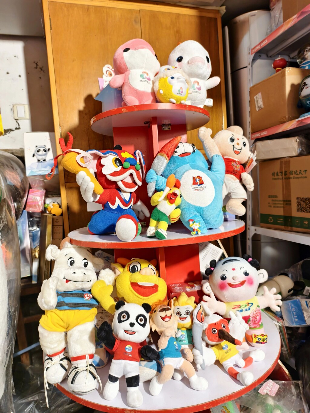 我觉得这四个吉祥物特别可爱,特别喜欢里面的大熊猫和金丝猴。我收藏的是一套有盒子的基础款,我最喜欢的是汉服造型的版本,一直在找那套吉祥物,但目前还没收藏到,我会继续找的。2021年我还去过西安,进过十四运的特许店里。