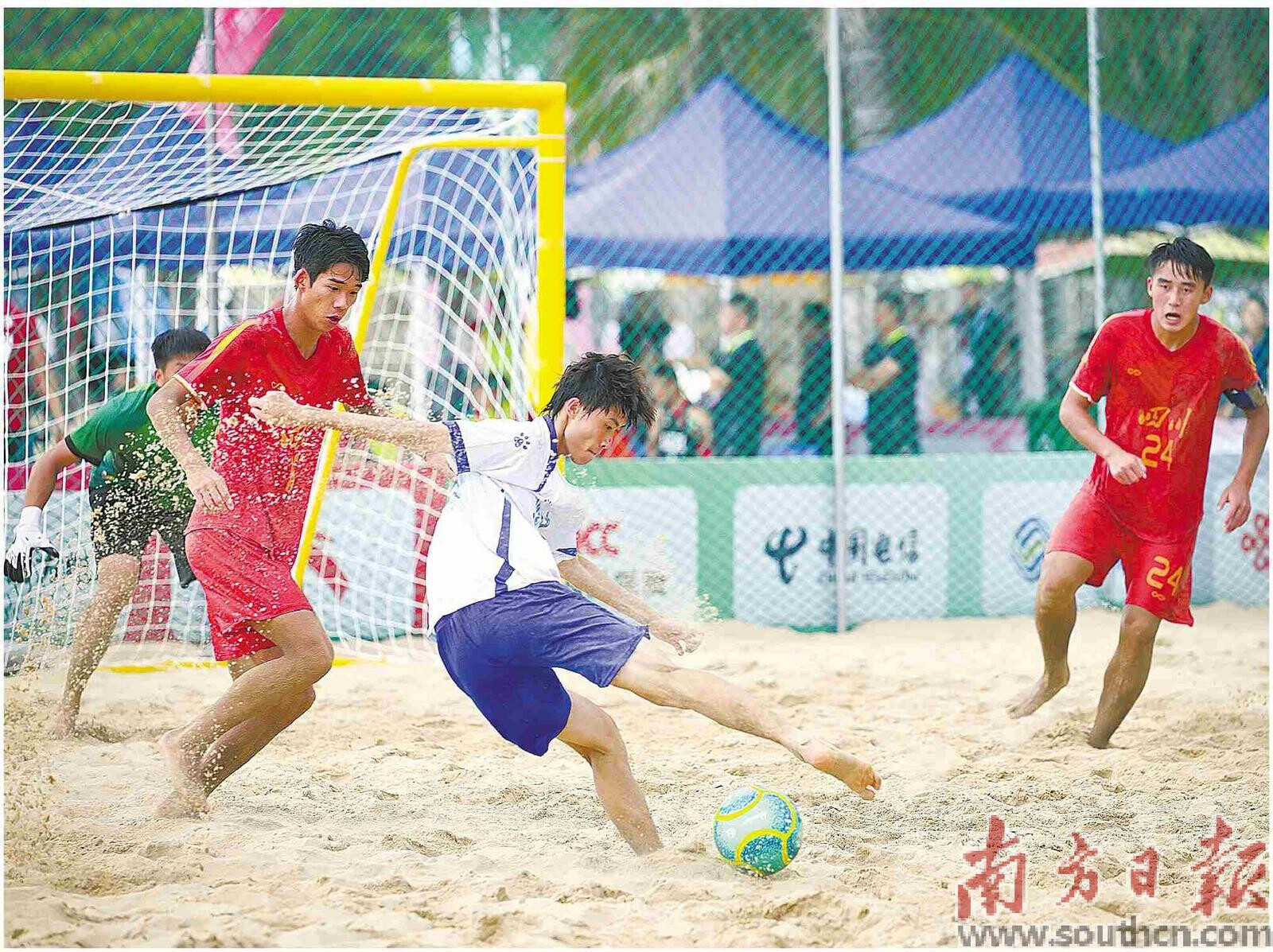 8月5日,十五运会群众比赛足球项目沙滩足球决赛在阳江市海陵岛激情开赛。来自全国的22支队伍(男女各11支)展开对决,争夺6枚奖牌。