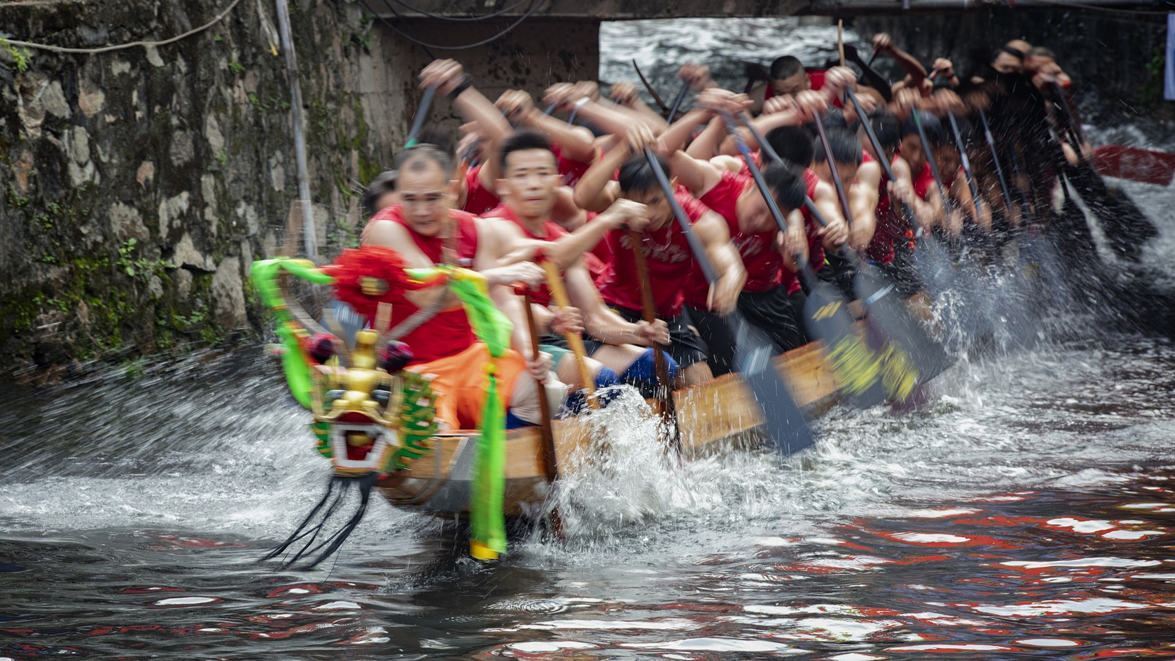 据统计,目前南海全区共有超千支龙舟队,龙舟2000余条,龙舟扒丁约2000人,龙舟教练约220人。区内还活跃着8个龙舟协会和9个俱乐部。今年5月17日,在佛山叠滘盐步老龙起龙仪式中,村民将沉埋河底 ,已有593年高龄的坤甸木龙舟唤醒,以古法“采青”祭拜,延续起自明宣德年间的敬畏之心。这种由祭祀图腾演变为全民节庆的文化生命力,正是“宁可煲烂,不可扒慢”的岭南精神写照——既是对先民劈波斩浪的致敬,亦是对当代大湾区团结同心进取精神的诠释。