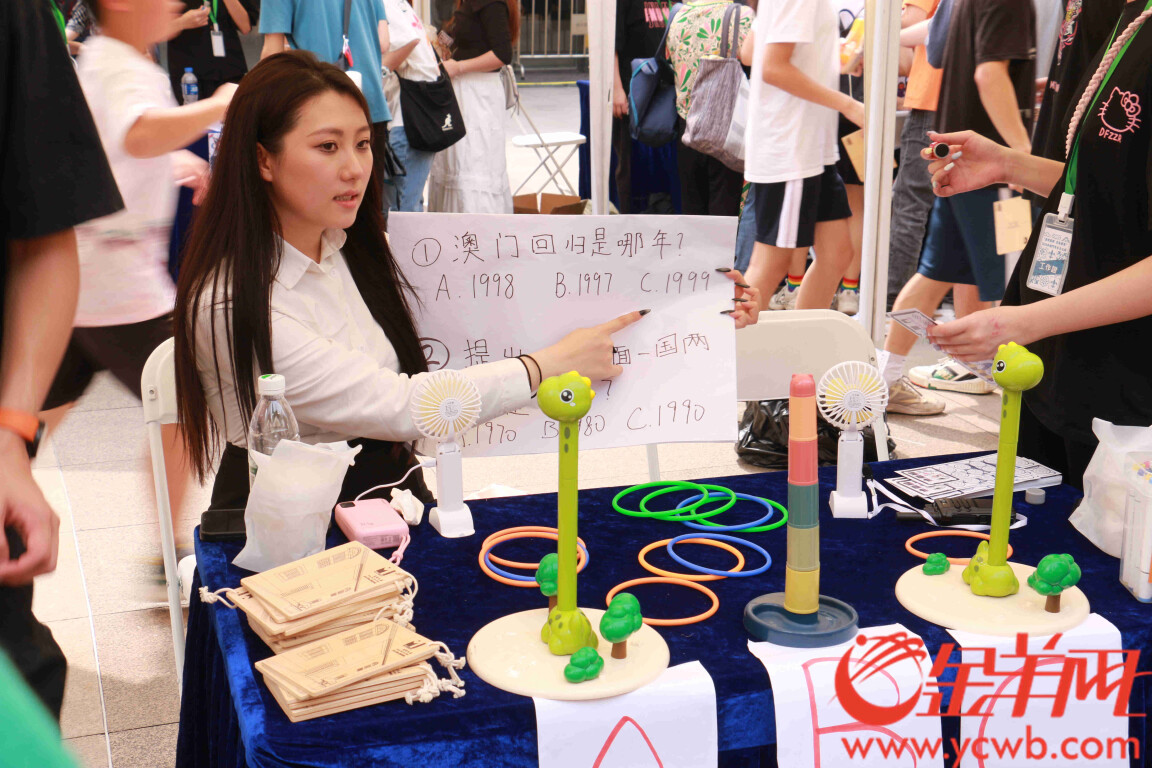 此外,活动主办方还在现场设置摊位,介绍横琴、天河、黄埔、南沙等地的青年就业创业政策,为澳门青年学生了解湾区、融入湾区生活发展提供帮助。“我觉得这个活动很有意义。”专程从澳门赶来广州参加活动的澳门城市大学学生林同学说,“在这里,大家既了解澳门的特色文化,还可以咨询了解大湾区多地的青年就业创业政策,为我们澳门学生在湾区生活发展提供指导。”