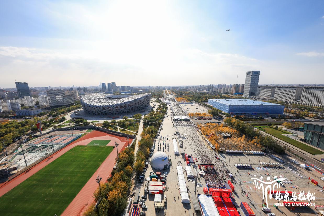 参加北京马拉松的选手途经鸟巢和水立方。图据赛事组委会