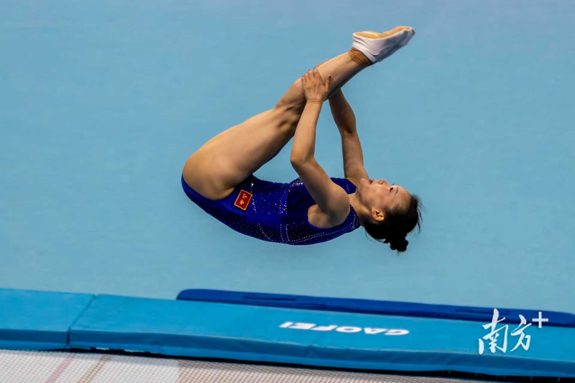 在女子团体赛中,山西队在最后一跳逆转浙江队,夺得金牌。“最后一个上场,说实话,压力稍微有一点大。”山西队队员张欣欣是该队夺冠的关键人物,这是她第二次参加全运会,也是第一次参加蹦床成年组的比赛。在上场前,山西队的分数位列第二。当她完成动作之后,比分出现在显示器上的那一刻,全队欢呼雀跃。“我仔细想了一下,只要把动作正常完成,就有希望反超。所以我让自己冷静下来,保持平时训练的状态,顺利完成了动作。”张欣欣说。