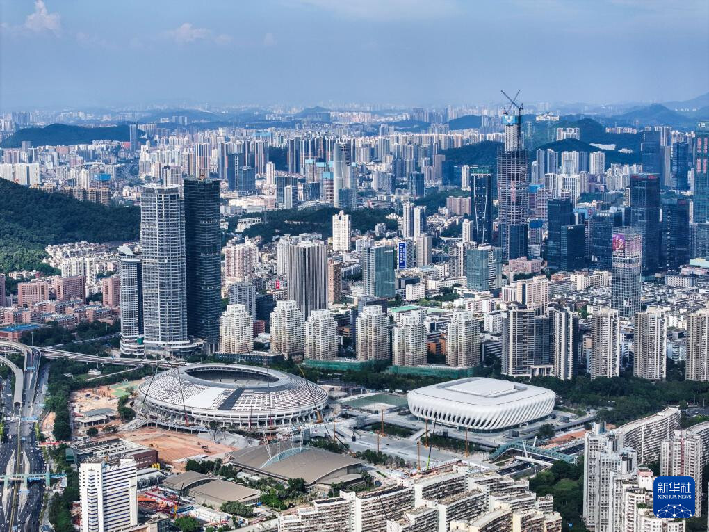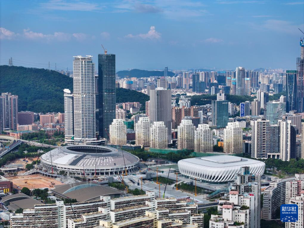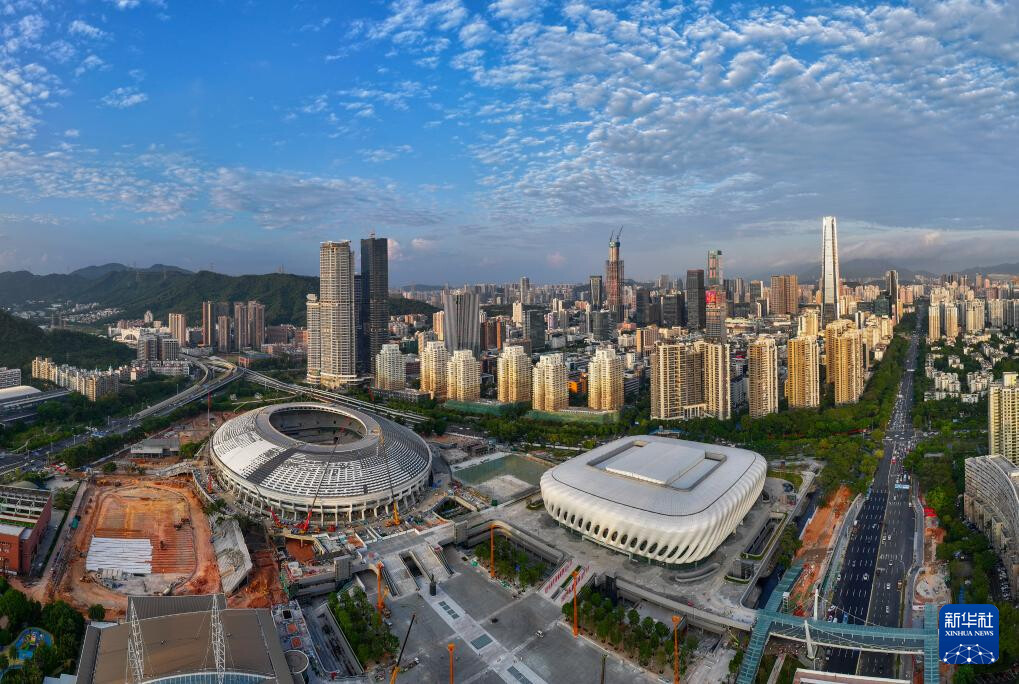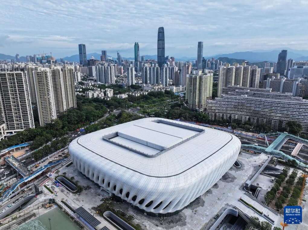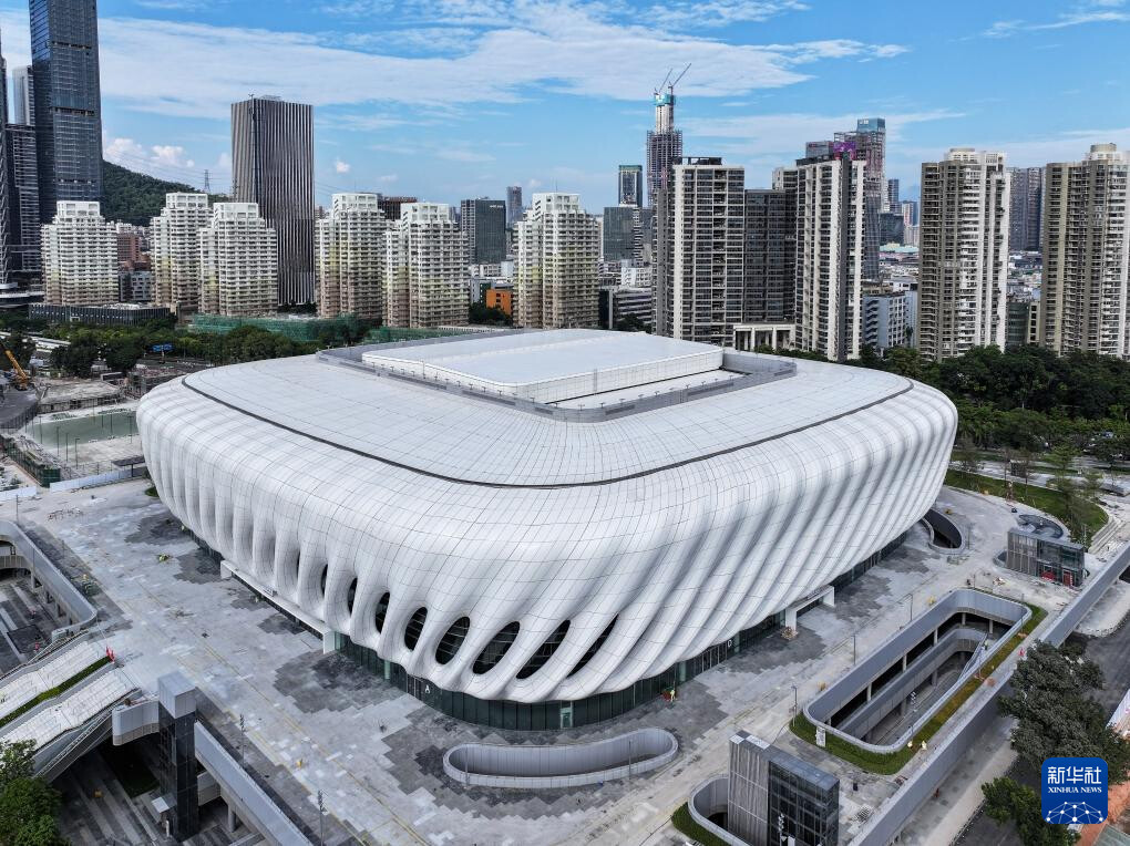 这是10月16日无人机拍摄的深圳体育馆。深圳体育馆是开合屋盖与移动式中央智能屏相结合的综合性体育馆,改造提升后可以满足篮球、网球、冰球等不同赛事需求。